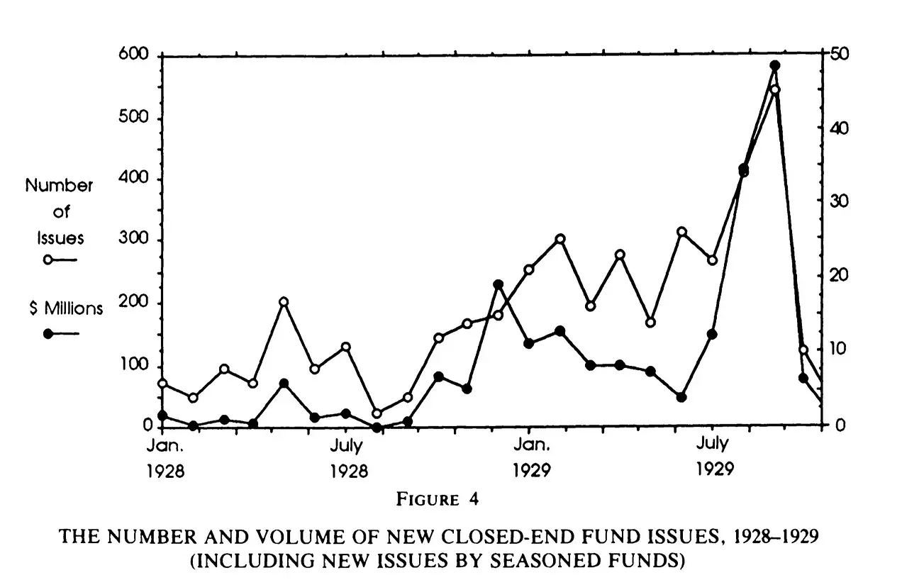 弗雷德里克·刘易斯·艾伦(Frederick Lewis Allen)的记述证实了加尔布雷斯(JK Galbraith)的说法;在 《昔日岁月:1920 年代的非正式历史》 一书中,艾伦(Frederick Lewis Allen)生动地描述了“投资信托如何像蝗虫一样成倍增加”: