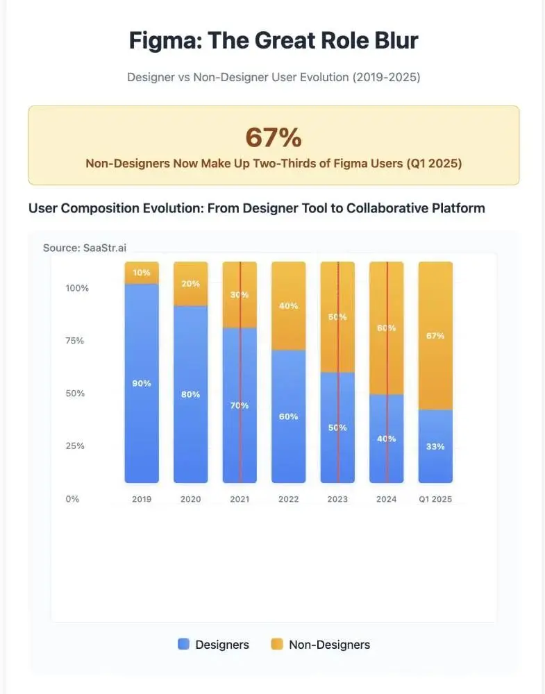 让我先分享一个让人震惊的数据:Figma的1300万月活用户中,三分之二不是设计师。这意味着产品经理、开发者、市场人员、运营专员、甚至CEO都在使用这个最初被定义为"设计工具"的软件。如果你觉得这只是用户群体的自然扩展,那就大错特错了。这个数据背后隐藏着现代企业工作方式的根本性变革,以及软件行业即将到来的一次范式转移。