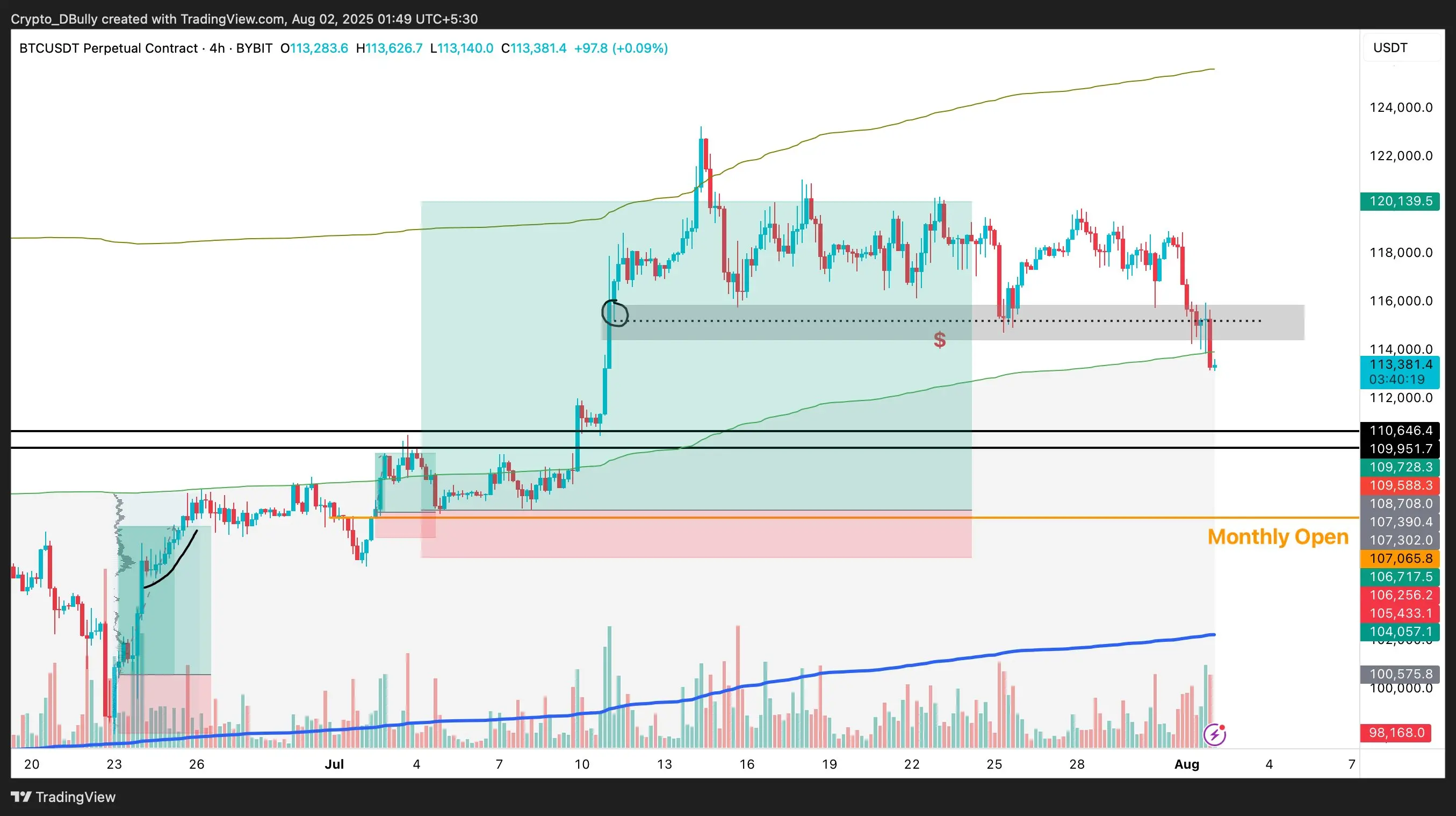 8 月 1 日,全球金融市场经历了一轮剧烈动荡,加密货币市场同样未能幸免。BTC 在凌晨一路下跌至 112751 USDT,抹去近三周的涨幅,创 7 月 10 日以来新低,截止发文 BTC 价格为 113639 USDT。ETH 也在凌晨下跌至 3431 USDT 的近期低点。