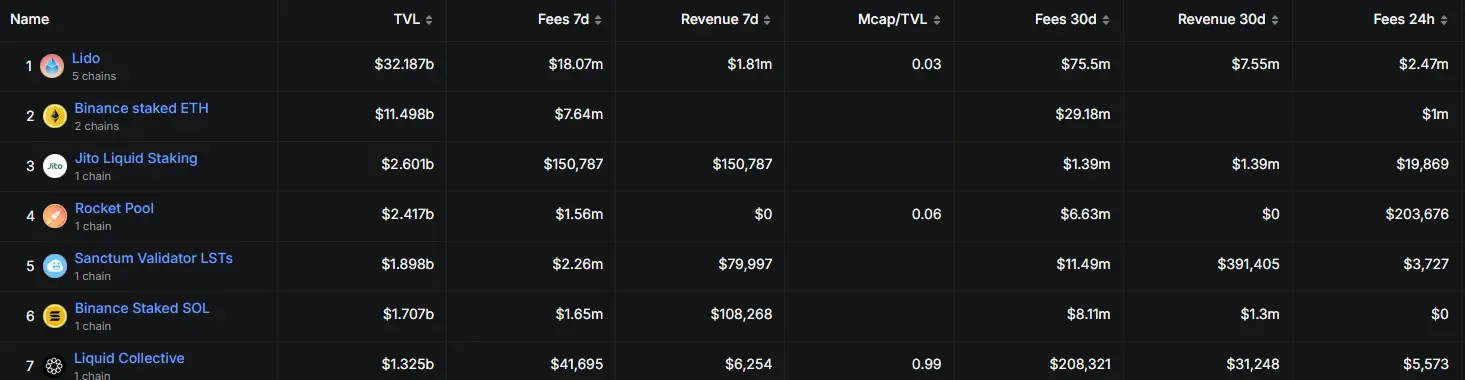 这一模式引爆了市场增长:流动性质押协议总锁仓额(TVL)已突破 670 亿美元,其中以太坊占比 76%(510 亿美元),Lido 独占 31% 市场份额。