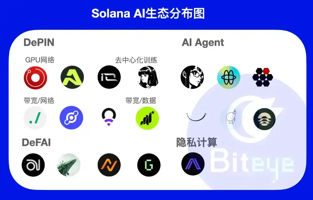DePIN 概念的火爆让 Solana 成为最早一批探索链上去中心化 AI 的公链,这些项目依托 Solana 区块链强大的性能和低廉的价格,构建了各自的去中心化算力、带宽、数据等网络,也给 Solana AI 生态打下了早期的基础。