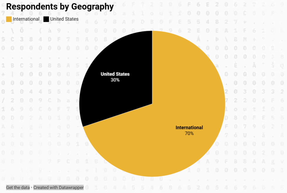 我们的资料集包含 1600 多份回覆,其中 99% 的受访者来自加密产业的专业人士。