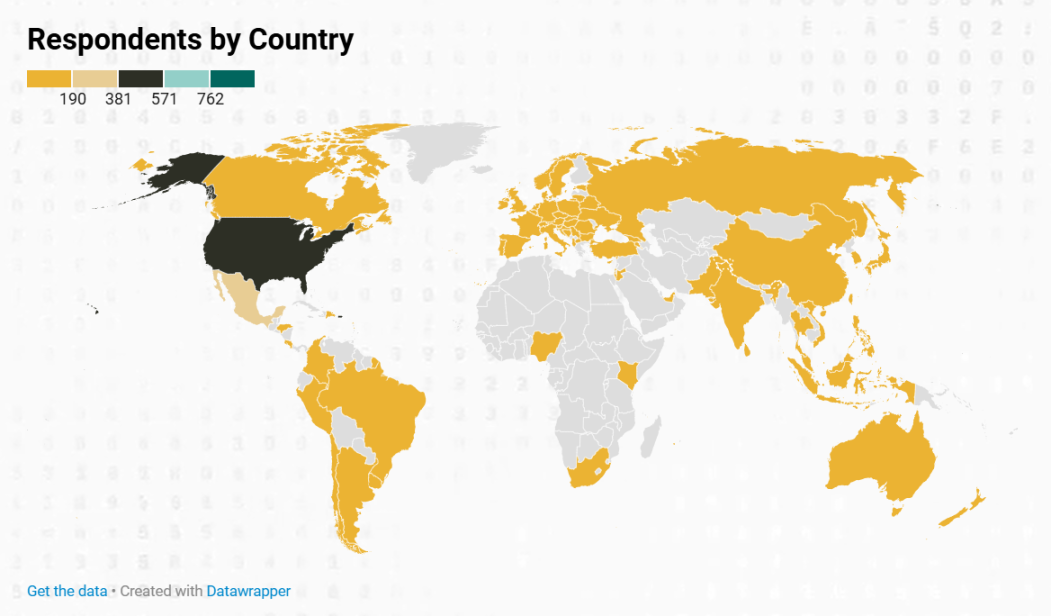 数据覆盖 77 个不同的国家,其中 72% 为美国之外的地区,其馀 28% 来自美国。