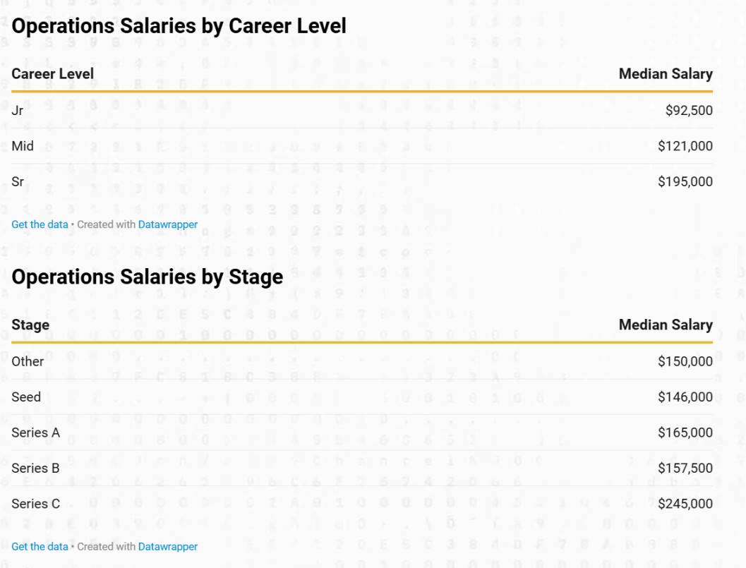 初级营运人员的中位数基本薪资为 92,500 美元,中级为 121,000 美元,高级为 195,000 美元。这一增长与经验和责任的提升相符。