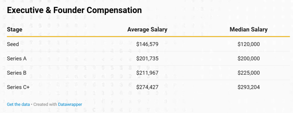 对于高阶主管职位,薪资随著公司的成熟而增长。在种子阶段,平均基本薪资为 146,579 美元,中位数为 120,000 美元。进入 A 轮后,薪资上升至平均 201,735 美元,中位数 200,000 美元。在 B 轮阶段,平均薪资增至 211,967 美元,中位数达到 225,000 美元。到 C 轮及以上阶段,高阶主管薪酬显著增长,平均为 274,427 美元,中位数为 293,204 美元,反映了后期公司更高的财务稳定性和增长潜力。