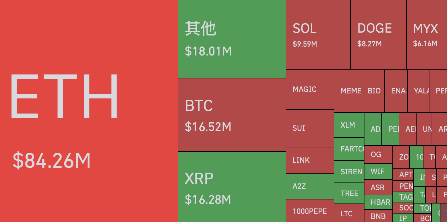 Eric 的强硬姿态并非空穴来风。根据 Coinglass,过去 24 小时加密货币急涨已导致超过 1.3 亿美元空头部位遭强制平仓,其中 ETH 空单损失尤为显著。