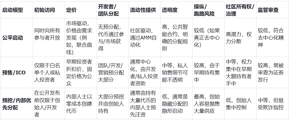Memecoin 市场是加密货币生态系中一个高度动态且快速发展的领域,其特点是啟动机制和治理模式的持续创新。去中心化和公平性理想与确保初始资金和长期可持续性的实际需求之间固有的张力,可能会推动未来更複杂混合模型的发展。