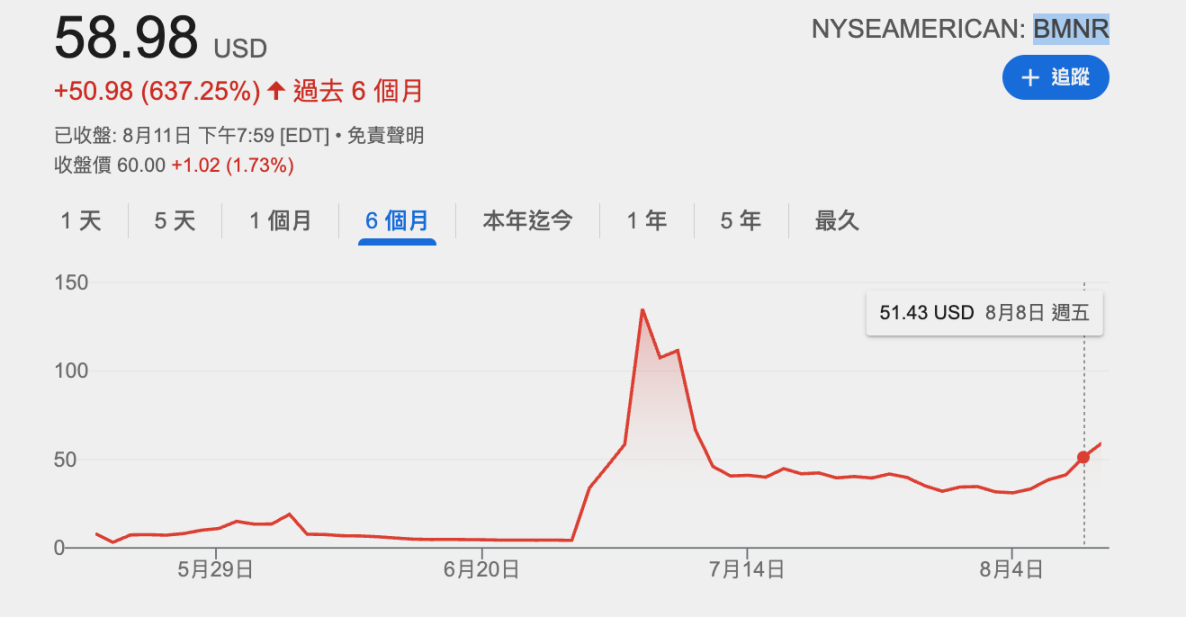 实际回测来看,ETH 的价格在 7 月从 2500 美元涨至 3800 美元,涨幅为 52%。而在此期间,BitMine 股票 BMNR 的价格从 7 月 1 日的 46 美元最高涨至 135 美元,最高涨幅达 193 %。