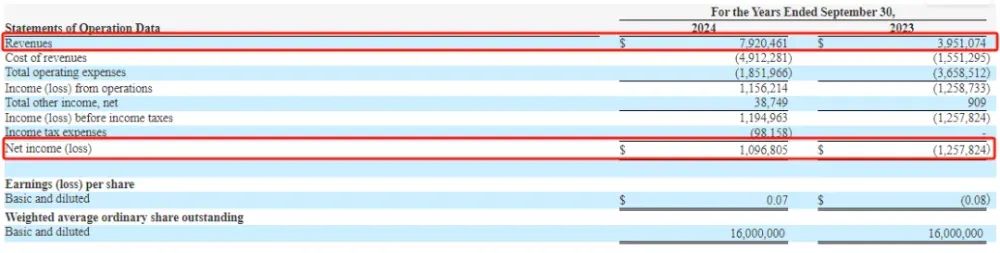招股书显示,该公司员工总数在2022年末、2023年末和其2024财年末(即2024年9月30日) 分别为37人、38人和24人。而截至其2025财年第一季度末(2025年3月31日),在职员工进一步减少至23人。