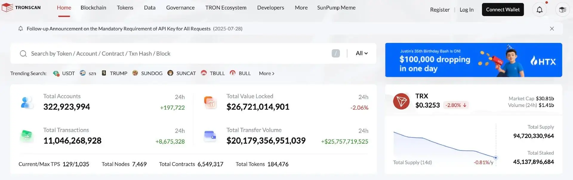 2024 年 8 月 13 日,SunPump 以 Beta 版崭露锋芒。一年后的今天,SunPump 平台已跻身全球顶级 Meme 公平发射阵营。截至8月11日,SunPump平台累计创建代币数量突破 100,324 枚。
