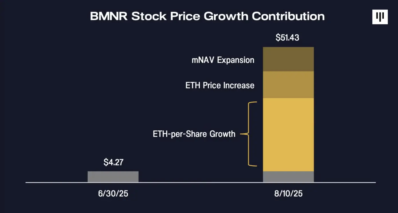 这表明 BMNR 股价上涨主要来自管理层可控的每股 ETH 增值,这正是 DAT 区别于现货持有的核心优势 。