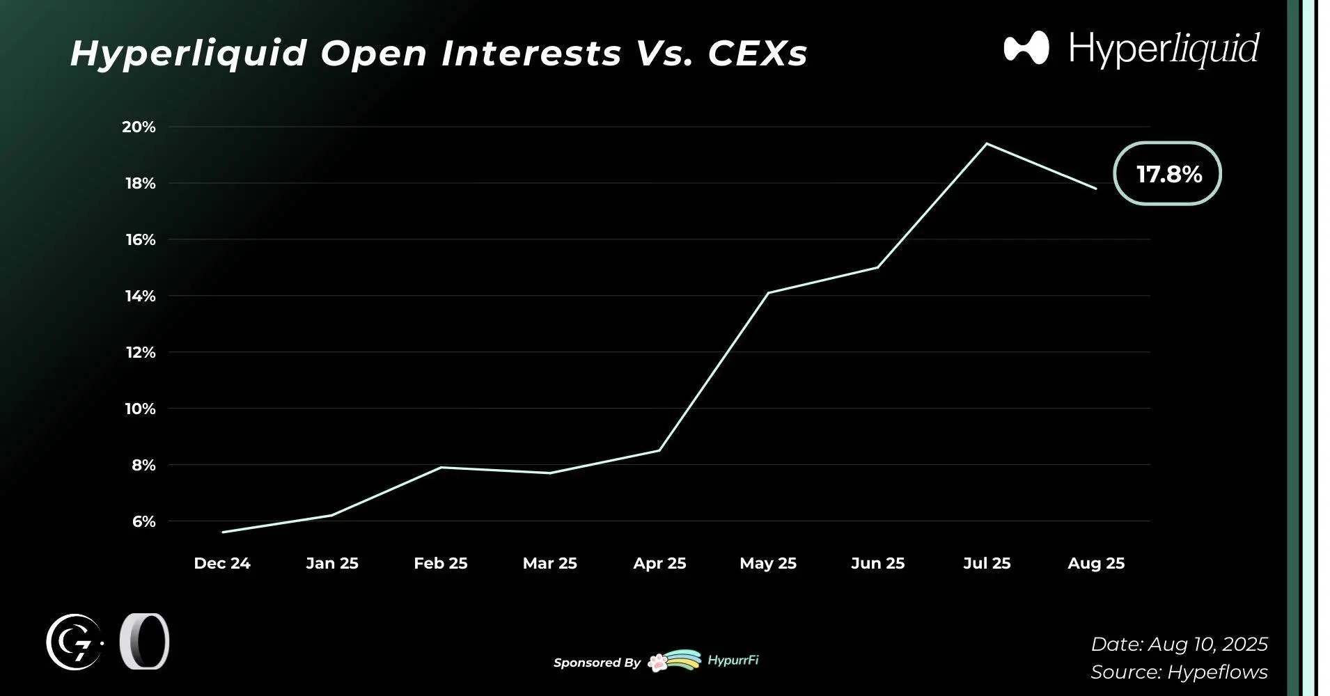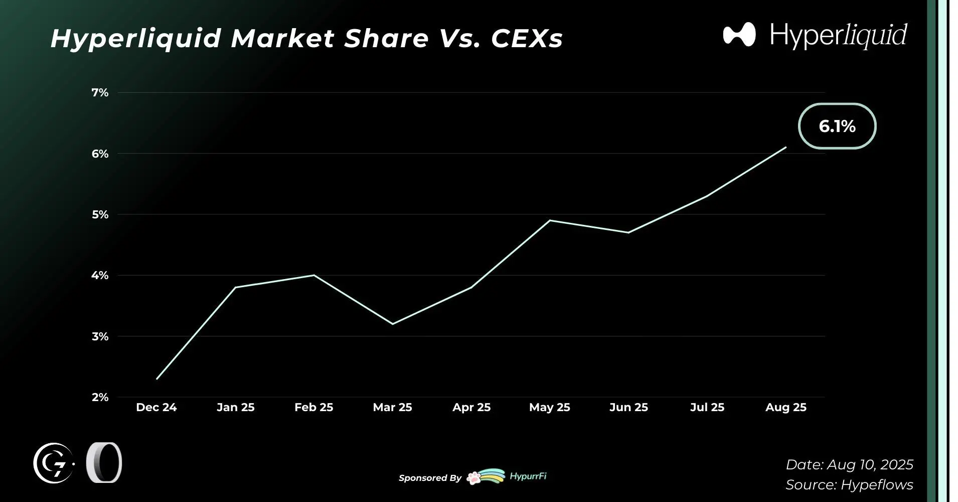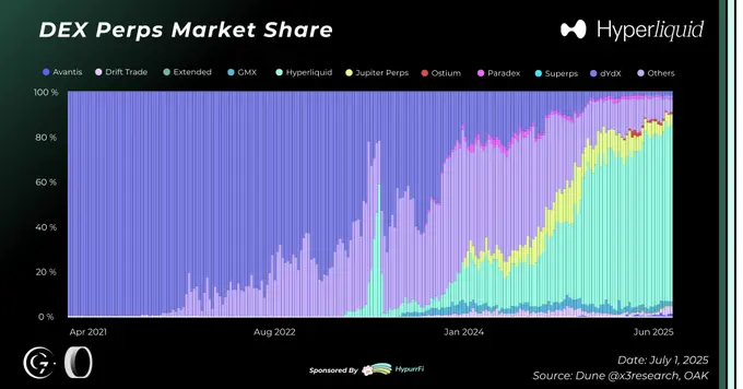 2025 年上半年,Hyperliquid 相对于中心化交易所(CEX)的增长尤为突出,截至目前: