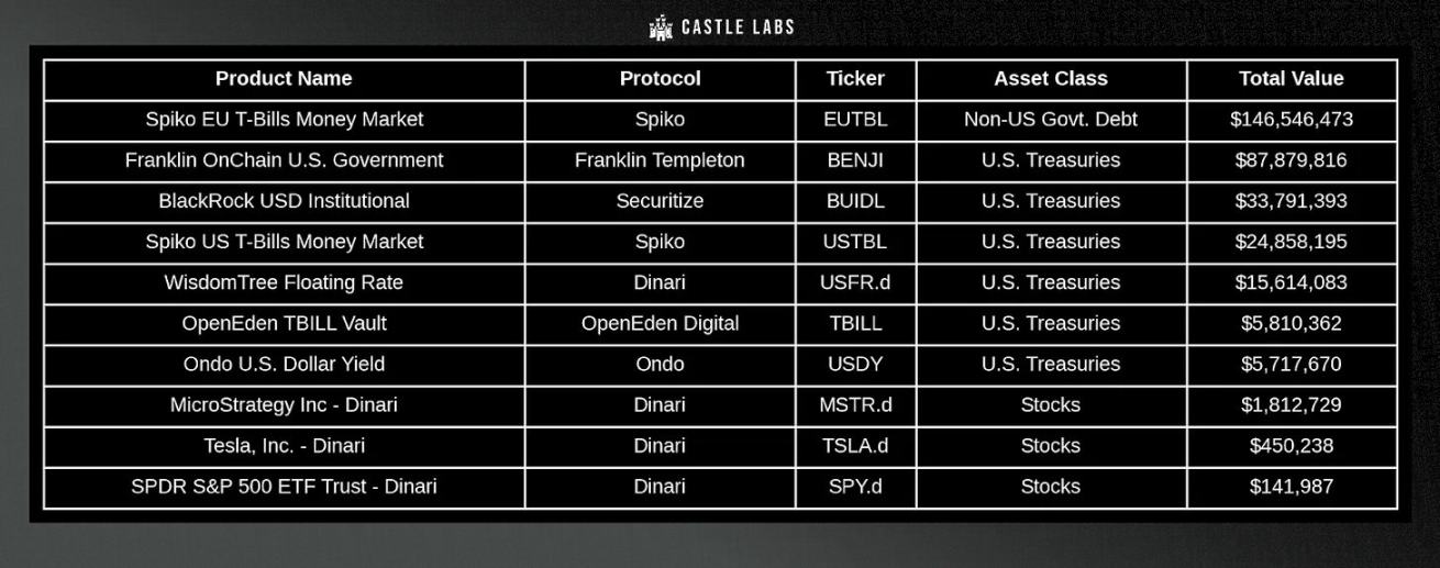 本节将深入探讨这些资产类别,重点介绍按总价值排名前十的 RWA 产品,并按发行方进行分类。