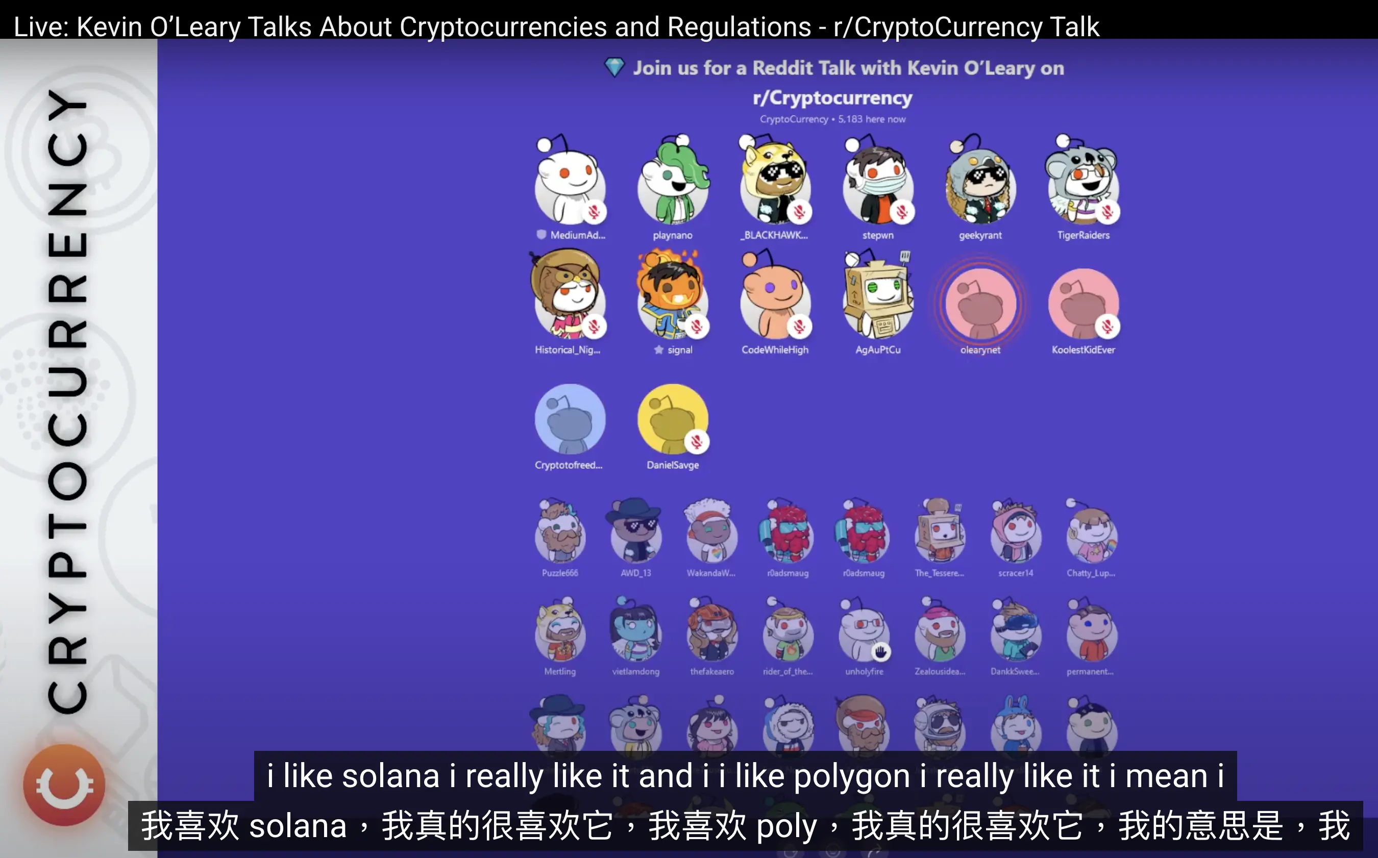 就在 2022 年 FTX 暴雷前的一个月, Reddit 的 r/CryptoCurrency 板块开了公开会议邀请了 O'Leary,他在与社区成员的沟通中提到了,他认为 Solana 的处理速度远超以太坊,这将为「金融机构采用」提供许多方面的可能性,而自己在见过 Solana 的团队之后认为他们是自己多年在软件公司的生涯中最聪明的一批人之一。他把加密视为「生产力软件」,类似投资微软或谷歌,并认为每个项目的成功与否取决于背后技术团队的实力。