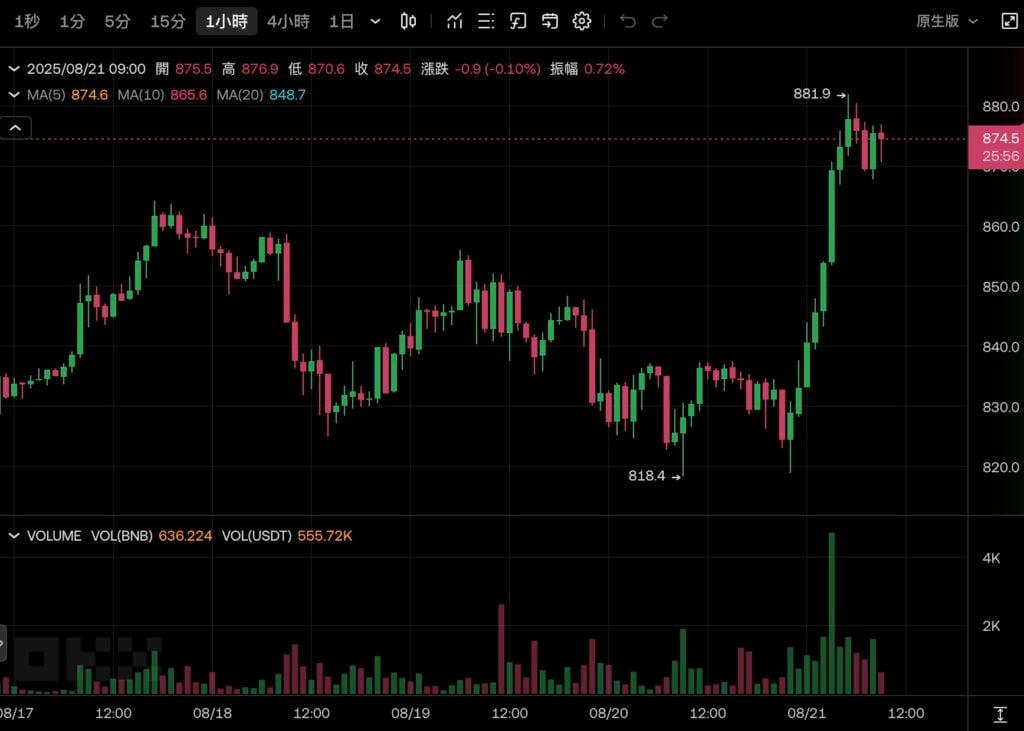 BNB 突破 800 美元创历史新高,睽违七个月进入新价格发现阶段