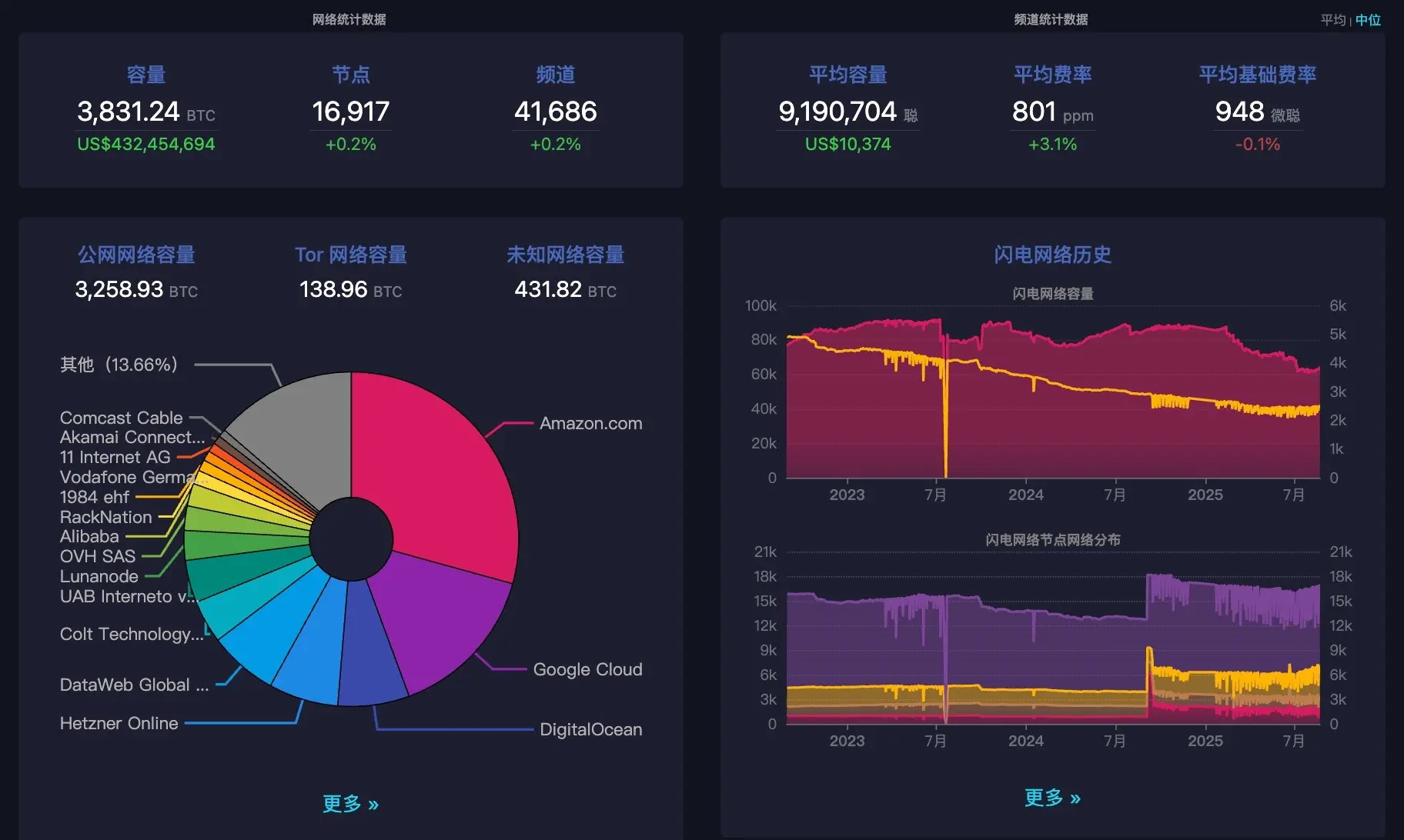 截至 2025 年 6 月,闪电网络已上线了 10 年,运行稳定,拥有超过 1.6 万个节点和 4.1 万个活跃通道;而在去年 BTC 破 10 万美元/枚的总锁仓容量就已经超过了 5,000 BTC。现今也保持接近 4,000 BTC 左右。