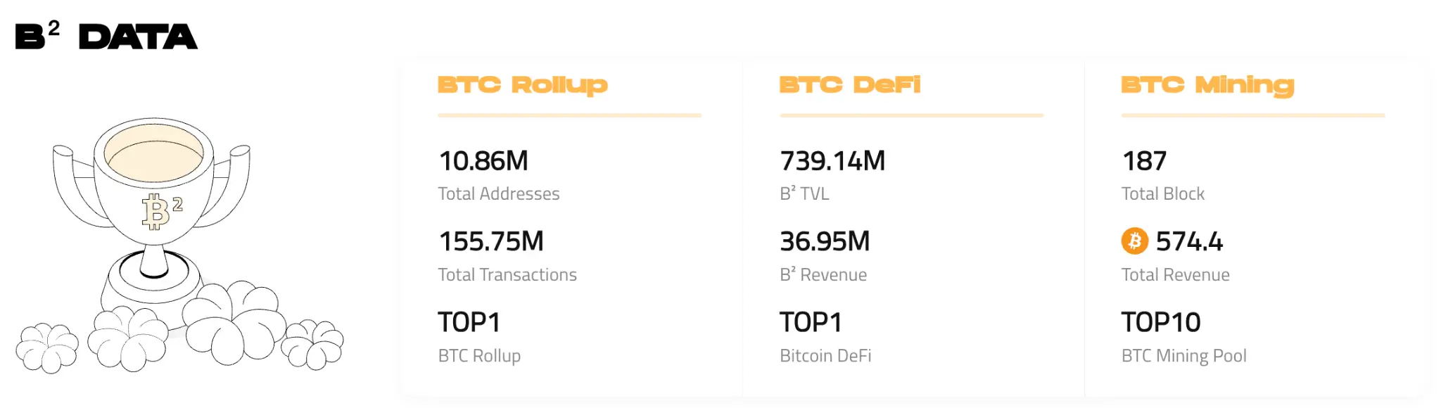 这么做有 2 个好处,一个是模块化的设计,可以在不对 BTC 网络进行任何修改升级的情况下,进行无限的水平扩容;另外还可以通过 B² Network 的 DA 层 —— B² Hub,可以聚合存储证明和状态转化证明,提交到比特币网络,集成比特币网络的安全性;