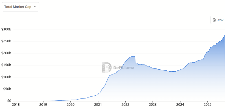 据 defiLlama 数据显示,目前稳定币总市值 2777.4 亿美元,7 日总增幅 0.96%,为 26.45 亿美元。其中,USDT 月增幅 2.6%,USDC 月增幅 4.63%,USDe 月增幅 80.87%。