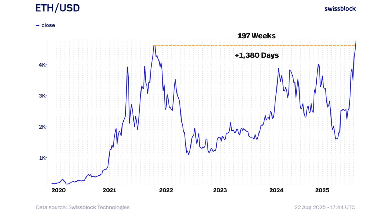 Weiss crypto 分析师 Juan 则表示,ETH 破 5000 美元后才能迎来山寨的疯狂,本轮上涨顶点有可能会在 9 月 13 日至 20 日之间,更有可能是后者。在此之前,市场总体将呈上涨态势。
