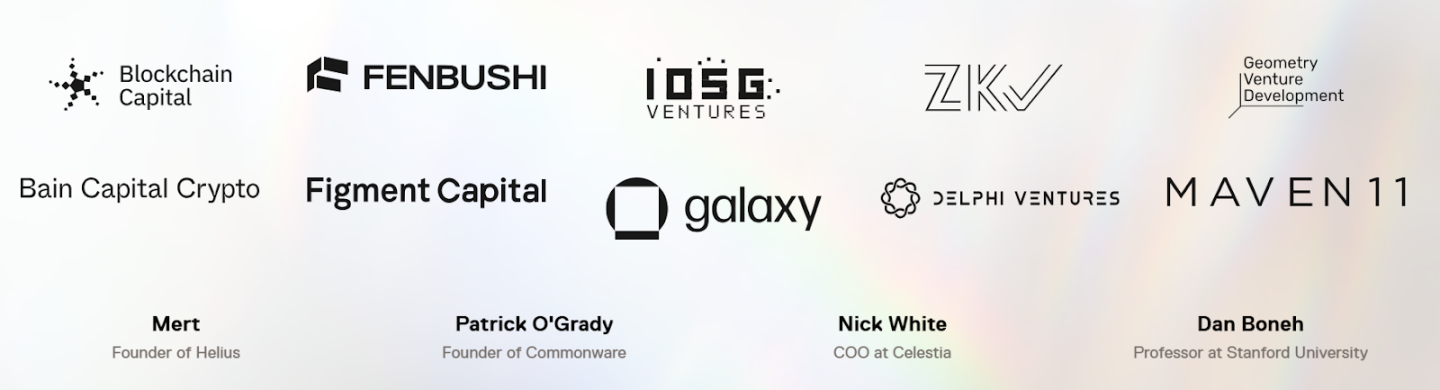 在融资方面,RISC Zero 于 2023 年 7 月完成 4,000 万美元的 A 轮融资,由 Blockchain Capital 领投,种子轮领投方 Bain Capital Crypto 继续参投,其他投资方还包括 Galaxy Digital、IOSG、RockawayX、Maven 11、Fenbushi Capital、Delphi Digital、Algaé Ventures、IOBC、Zero Dao(Tribute Labs)、Figment Capital、a100x 与 Alchemy 等。