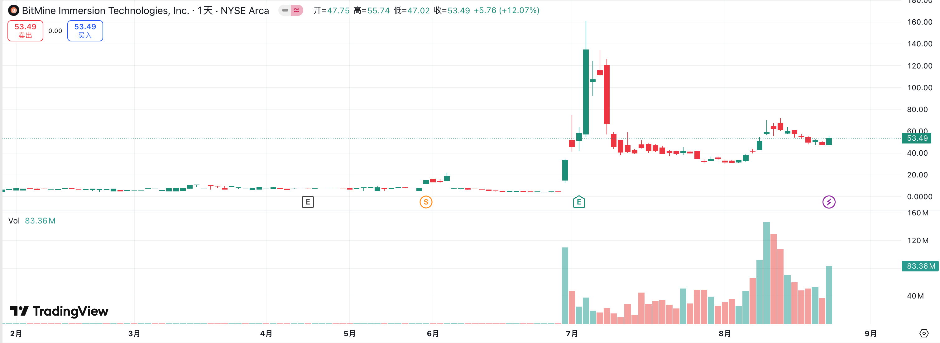 在 ETH 财库公司赛道中,竞争同样白热化。Joseph Lubin 带领的 SBET 作为第一个喊出「ETH 微策略」概念的上市公司,凭借先发优势和 ETH 代言人的叙事,在市场初期迅速引发了强烈的 FOMO,从 3 美元一度狂飙至 120 美元以上,成为山寨财库模式的标杆案例。