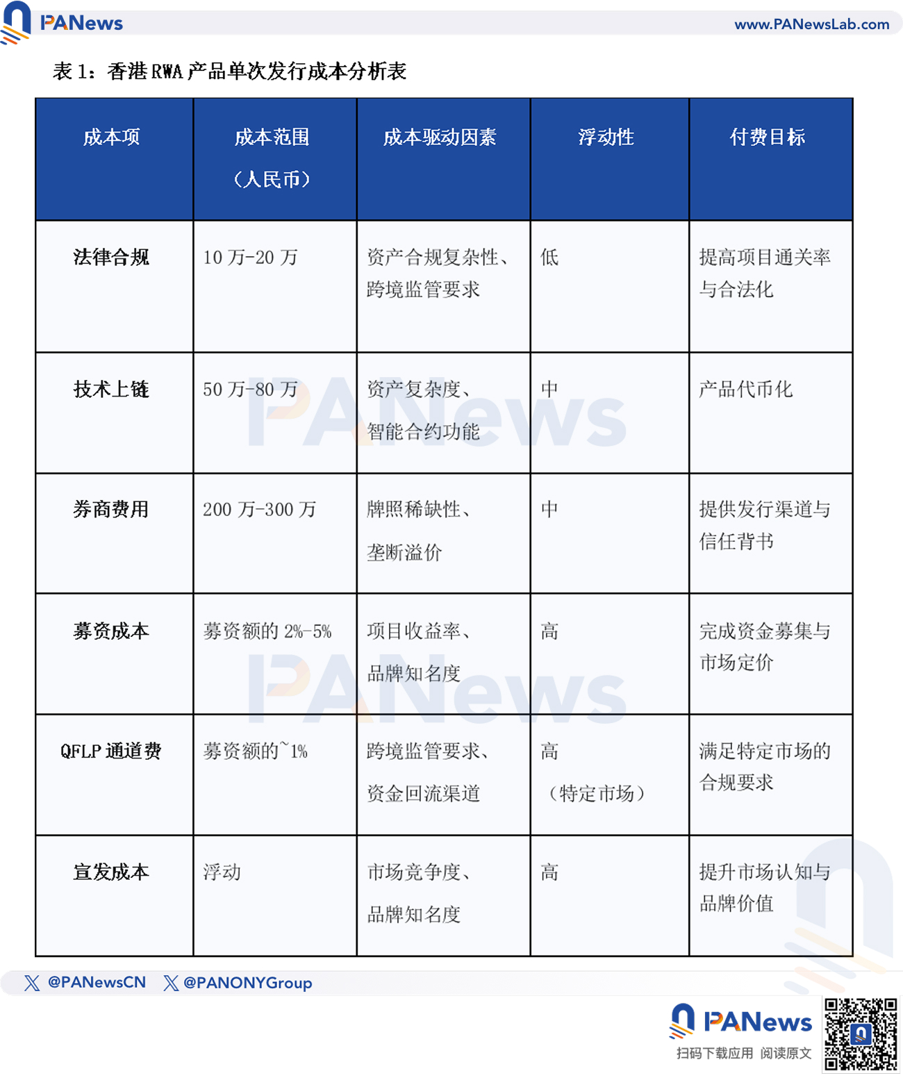 对于规划在香港深耕RWA领域的项目方而言,产品单次发行成本仅为冰山一角。规模化的业务布局和合规维护将产生更大的资金挑战,其固定成本虽然高昂,却也将形成项目方的竞争壁垒与“护城河”。