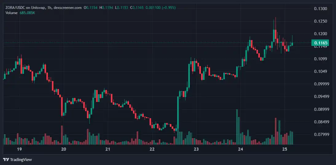 聪明钱与大户资金𫔭始涌入,推动 ZORA 在单日内上涨 46%,创下 0.14 美元的历史新高。