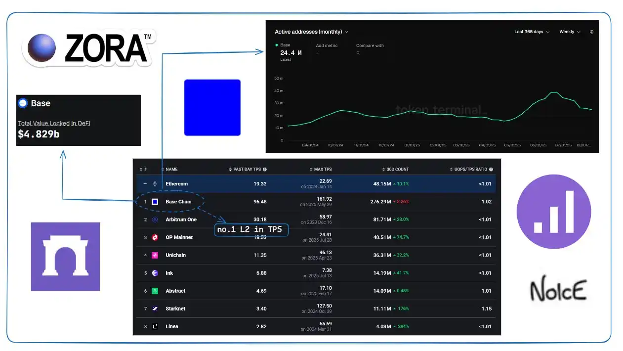 · Noice:一个 Farcaster Mini App,专注于打赏与互动,是 Farcaster 经济的流量入口。它透过内容打赏提升用户参与度,形成对 Zora 的代币化功能与 Farcaster 的社交层的补充。Noice 的影响力曾在 Base TBA 大会上由其创办人出席而得到凸显。