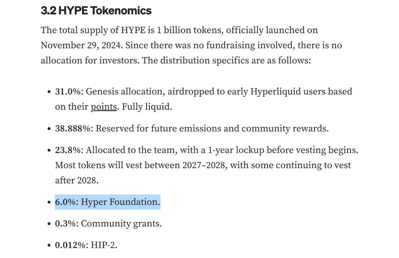 但这个数字很可能被高估,因为 CoinGecko 未排除所有协议持有的钱包(如 Hyper 基金会、社区资助基金和援助基金)。实际上其中大量代币尚未进入市场,真实流通量应该更低。