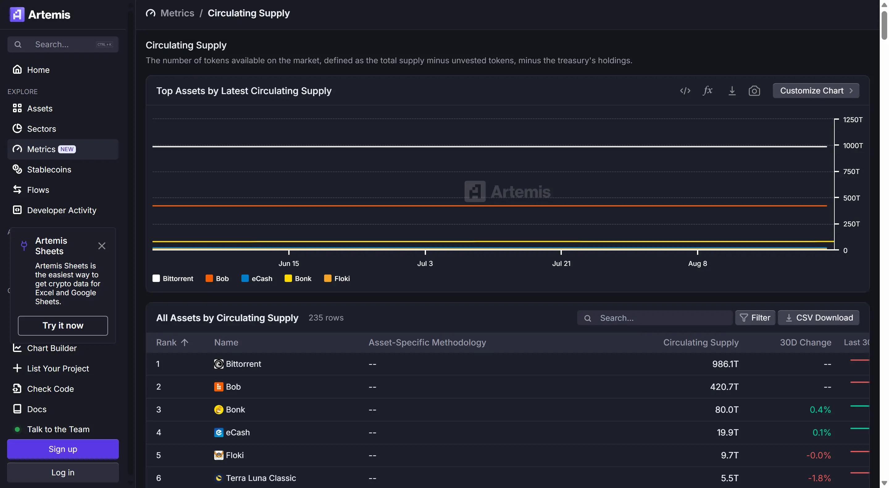 代币估值含混,Artemis 借股市经验提出智能循环供应量