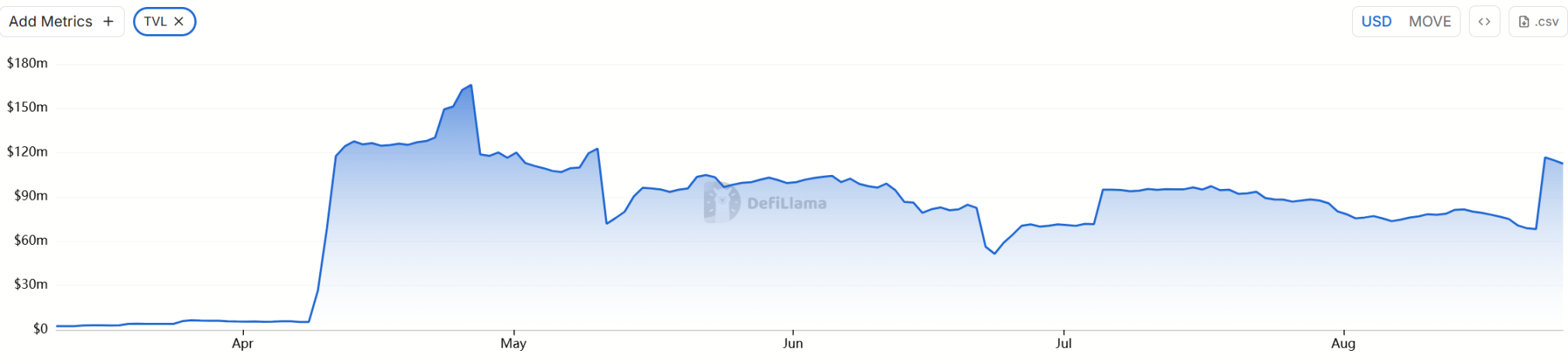 据 defiLlama 数据显示,其 TVL 也从最高的 1.66 亿美元一路大跌至 5000 万美元,跌幅超 300%。
