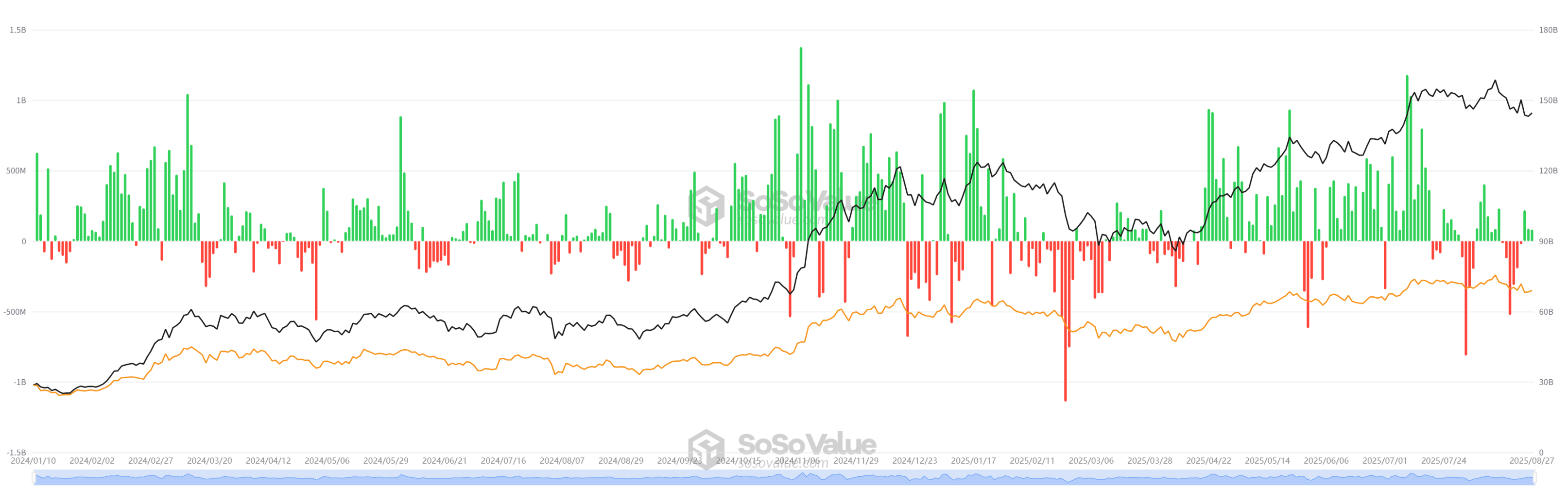 据 SoSoValue 数据显示,截止 8 月 28 日,比特币现货 ETF 累计总净流入 541.9 亿美元,以太坊现货 ETF 则总净流入达到 136.4 亿美元。监管环境变化的宽松也是重要原因之一。自 2025 年 1 月特朗普上台以来,强调支持数字资产、区块链技术和相关技术的负责任增长,并撤销了拜登政府的相关政策。该命令还设立了国家经济委员会内的数字资产工作组,旨在提出联邦监管框架,包括市场结构、监督、消费者保护和风险管理。