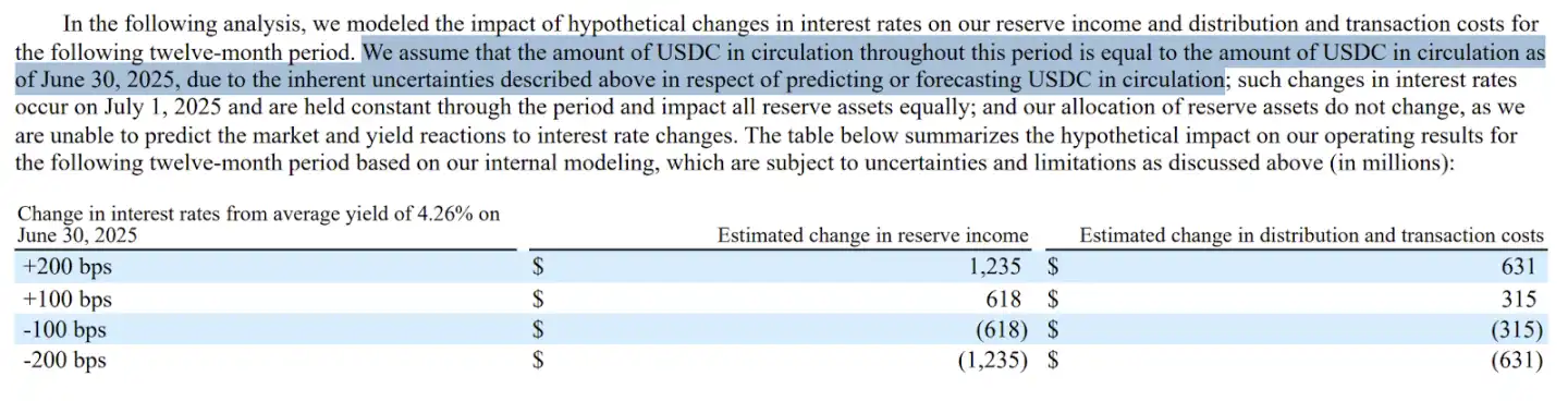 公司大部分营收来自储备金收益,利率波动会影响储备金收益率,进而可能改变储备收入,但因流通中 USDC 受用户行为等不确定因素影响,虽能预测利率对储备金收益率的影响,却无法準确预判其对储备收入的最终作用。