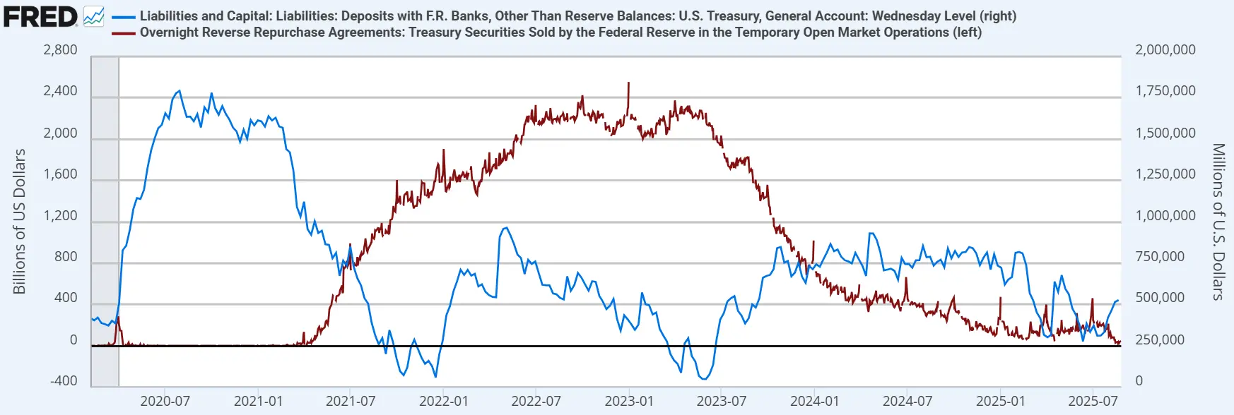短期来看,市场当前的调整更多是季节性与宏观不确定性的结果,而非趋势逆转。美联储在央行年会上释放的温和信号,为风险资产提供边际支撑;与此同时,财政部的万亿美元融资计划与低位的隔夜逆回购余额,意味着美元流动性仍面临一定压力。这种“政策温和与流动性收紧并存”的格局,使市场进入了“中场休息”阶段。