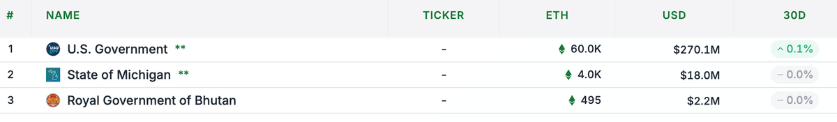 - 美国密歇根州政府:约 4000枚 ETH,价值 800万美元