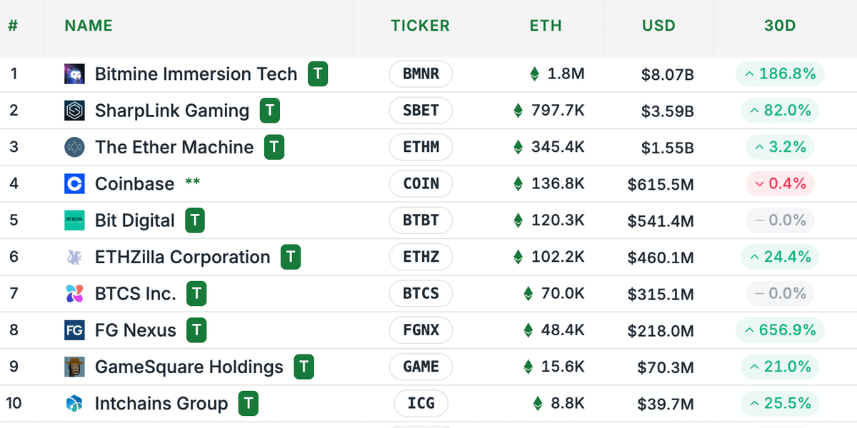 其他如ETHZilla、FG Nexus等也在逐步加码。