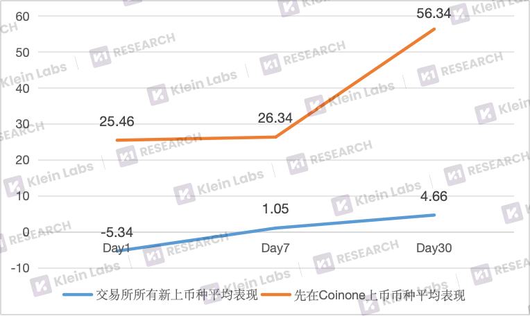 这种桥梁效应不仅体现在时间差,还体现在收益表现上:提前在 Coinone 上市的代币为早期参与者提供了显著的超额收益机会,而在后续进入其他主流交易平台时,则形成了跨平台的价格与流动性传递机制。Coinone 因此在韩国交易平台生态中扮演了项目孵化器和资产流通枢纽的双重地位。