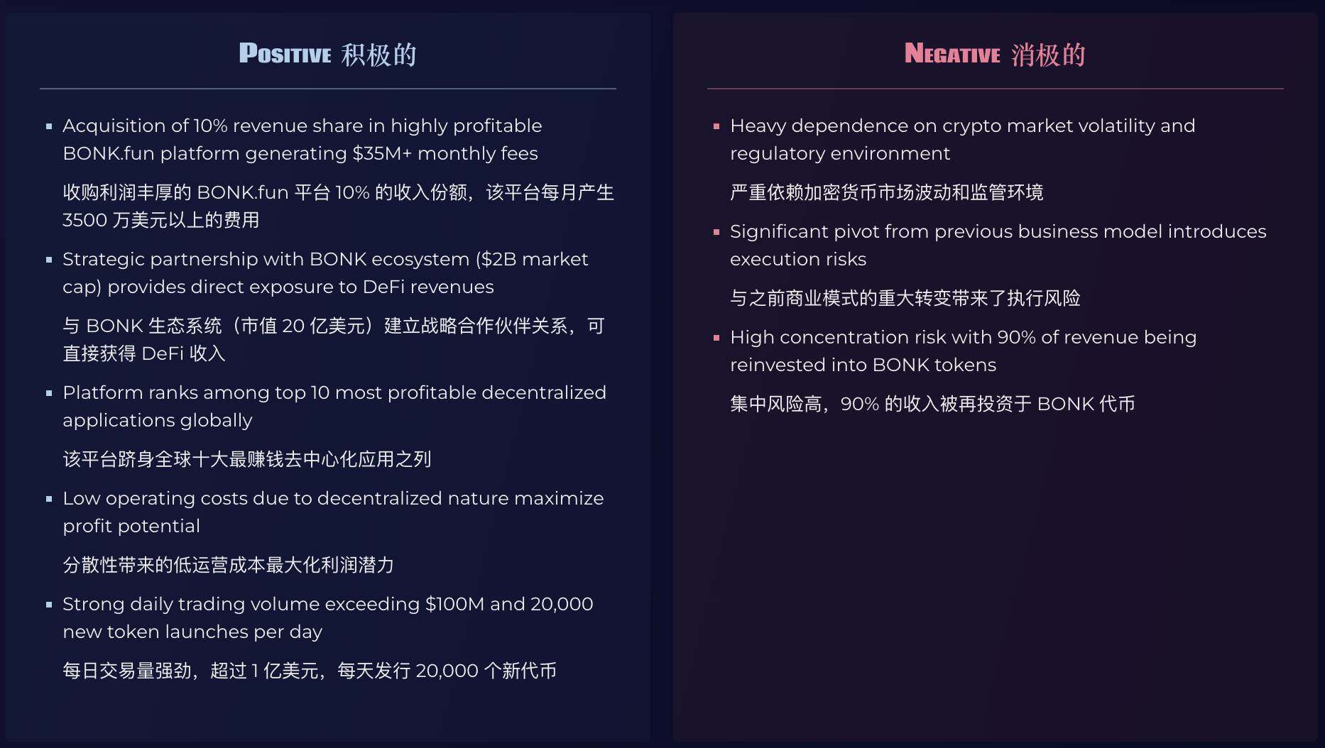 这被视为纳斯达克历史上 首家上市公司通过这种方式“与 meme 币分享收入” ,还将与代币持有者分享收益,因为收入最终流向 BONK 生态,支持持有者。