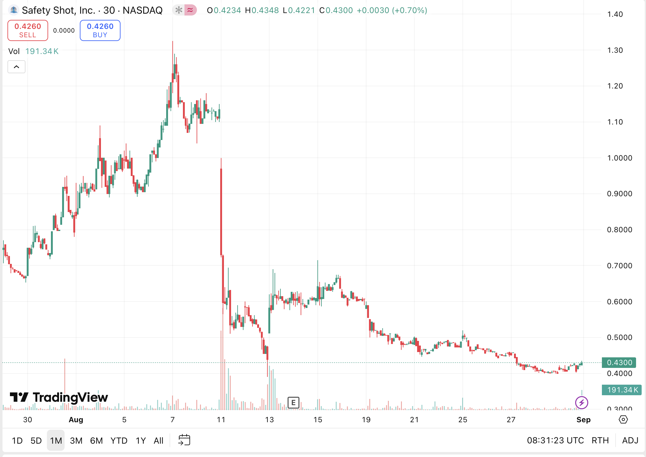 这一合作起初看来只是上市公司转型加密储备公司的又一次重复尝试,市场对其反应消极,Safety Shot 股价在公告后迅速腰斩,极速下跌 55%。
