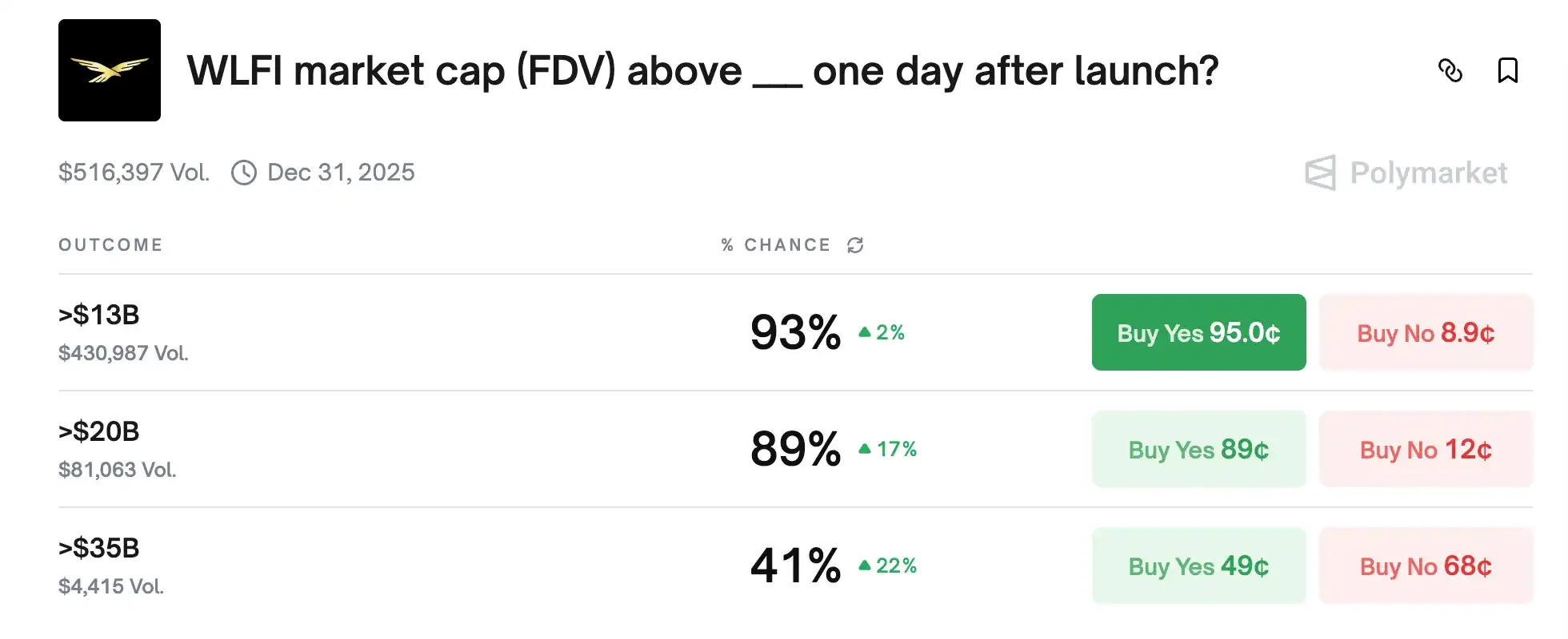 Polymarket 上的 WLFI 市值赌注