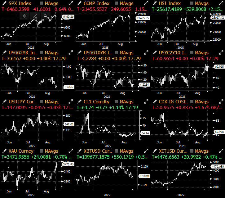 资料方面,7 月核心 PCE 通胀环比上涨 0.27%,同比上涨 2.9%,符合预期,但“超级核心”服务通胀意外强劲,达到 0.39%。市场愿意忽略金融服务领域的一次性增长,使得国债收益率维持在近期低点附近。