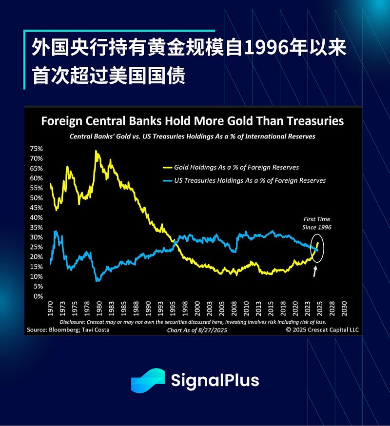 美联储在杰克逊霍尔会议后全面转向鸽派,贵金属大幅上涨,黄金逼近 4000 美元,白银自 2011 年以来首次突破 40 美元/盎司。此外,由于持续的地缘政治压力和粘性通胀,外国央行持有的黄金规模自 1996 年以来首次超过美国国债,且这一趋势预计将持续。