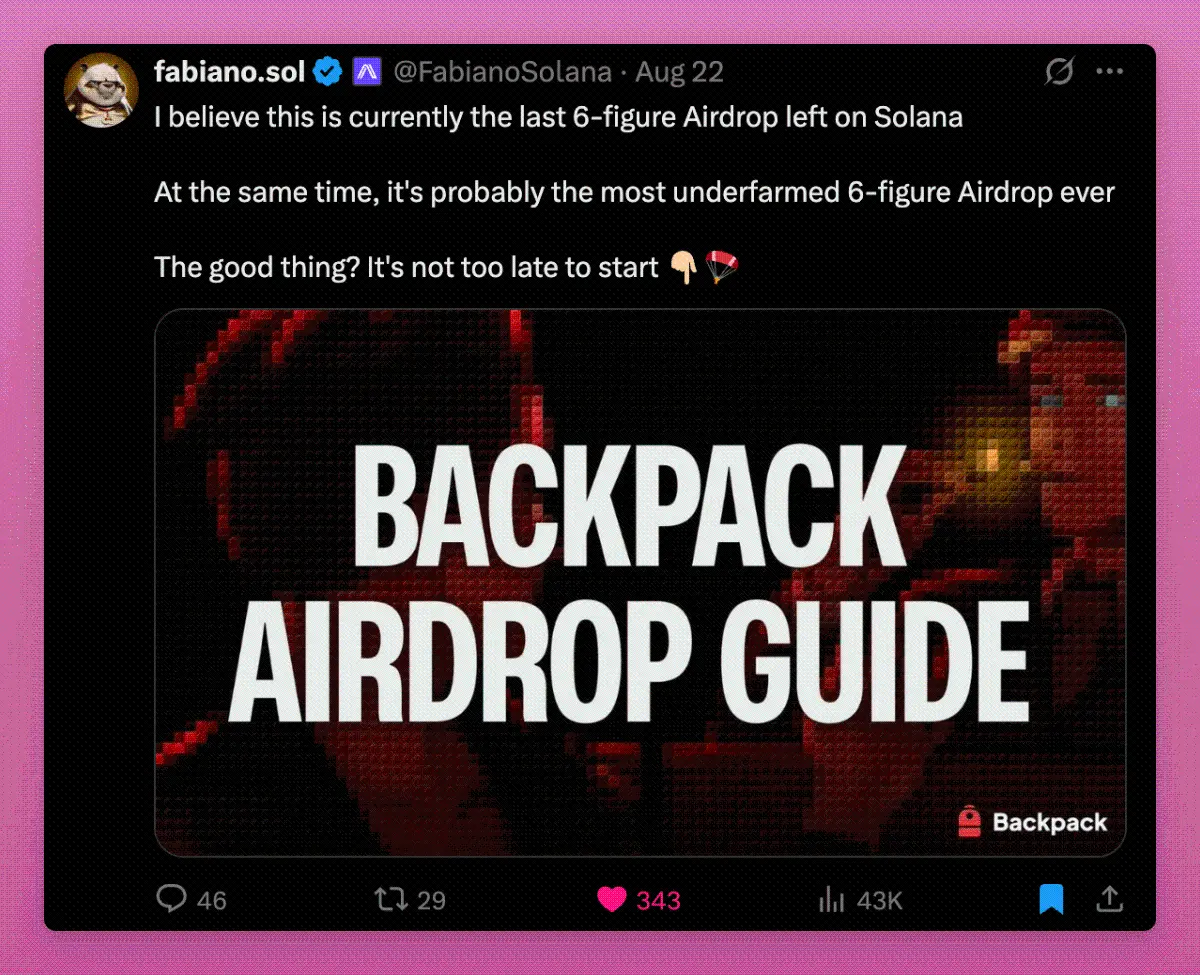 我同意 Fabiano 的观点,即它是「Solana 上最后剩下的六位数空投之一」。