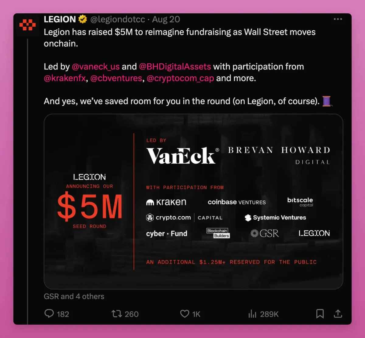 Legion 从知名机构那里筹集了 500 万美元,旨在将初创公司股权、私人信贷和知识产权引入加密市场。