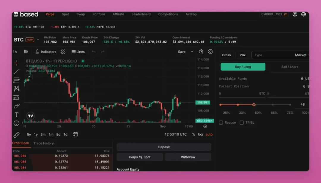 团队公开表示积分数量跟未来 BASED 空投挂钩。这是目前最清晰的设置之一。唯一的缺点是交易手续费比通过 HL 高 0.025%。