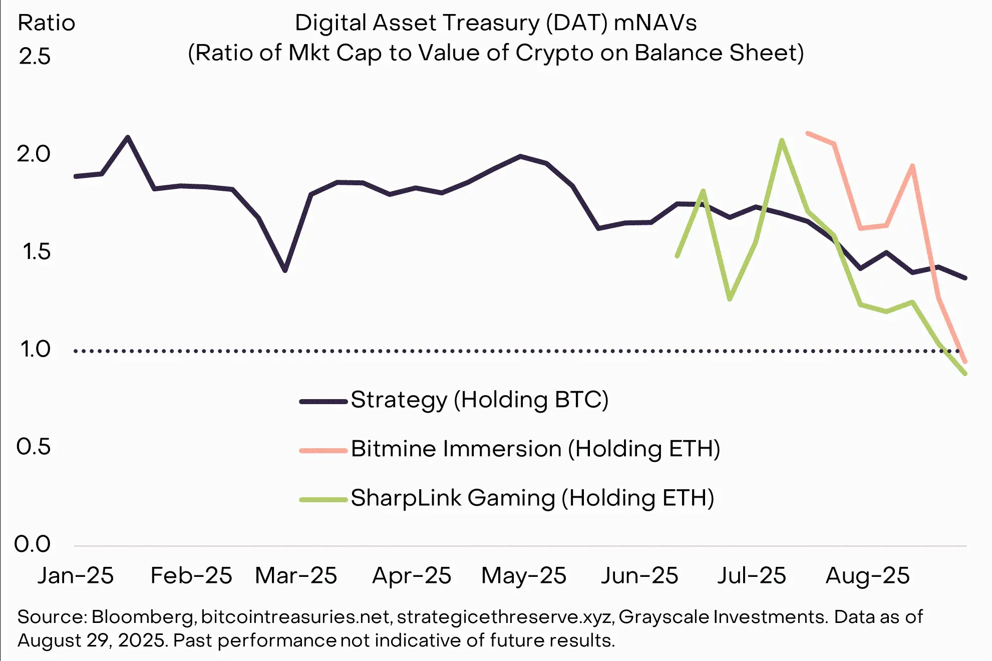 灰度:八月 BTC 与 ETH 走势分化,DAT 过剩了吗?