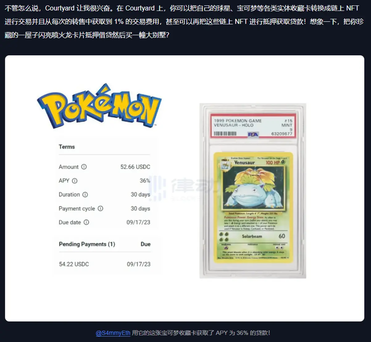 2023 年 8 月,Courtyard 刚刚引起少数 NFT 玩家关注时,我们曾对 Courtyard 进行了报导。在当时,已经有 NFT 玩家通过 Courtyard 获取宝可梦卡片并在链上进行抵押借贷。