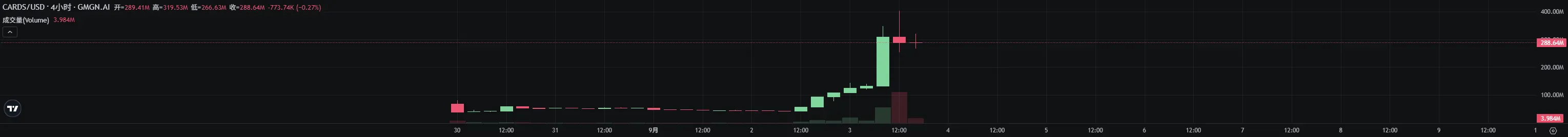 在币圈玩家们关注着川普的健康疑云风波,等待着可能的博弈机会时,一个叫 $CARDS 的币以从 9 月 2 日至今最高上涨近 10 倍,市值一度突破 4 亿美元的表现将玩家们的目光吸引。