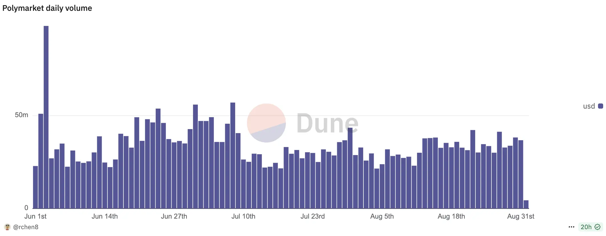 Polymarket 是预测市场里最鲜明的矛盾体:它既是赛道龙头,也是合规困境最深的「灰色玩家」。从规模和热度来看,它无疑是行业的现象级平台。平台 TVL 已达 1.4 亿美元,超过赛道前十平台总和;2024 年美国大选期间,Polymarket 的累计交易量高达 30 亿美元,下注金额超过 40 亿美元,远远甩开 Kalshi。哪怕放在日常交易数据里,它也稳居头部:近三个月,Polymarket 的日均交易量约为 4000 万美元,而 Kalshi 仅有 2000 万美元,差距虽然缩小,但龙头地位仍然稳固。凭借高度开放的架构与全球扩张步伐(如新加坡、阿联酋等市场 Polymarket 已经在用户规模与市场深度上形成了断层领先。