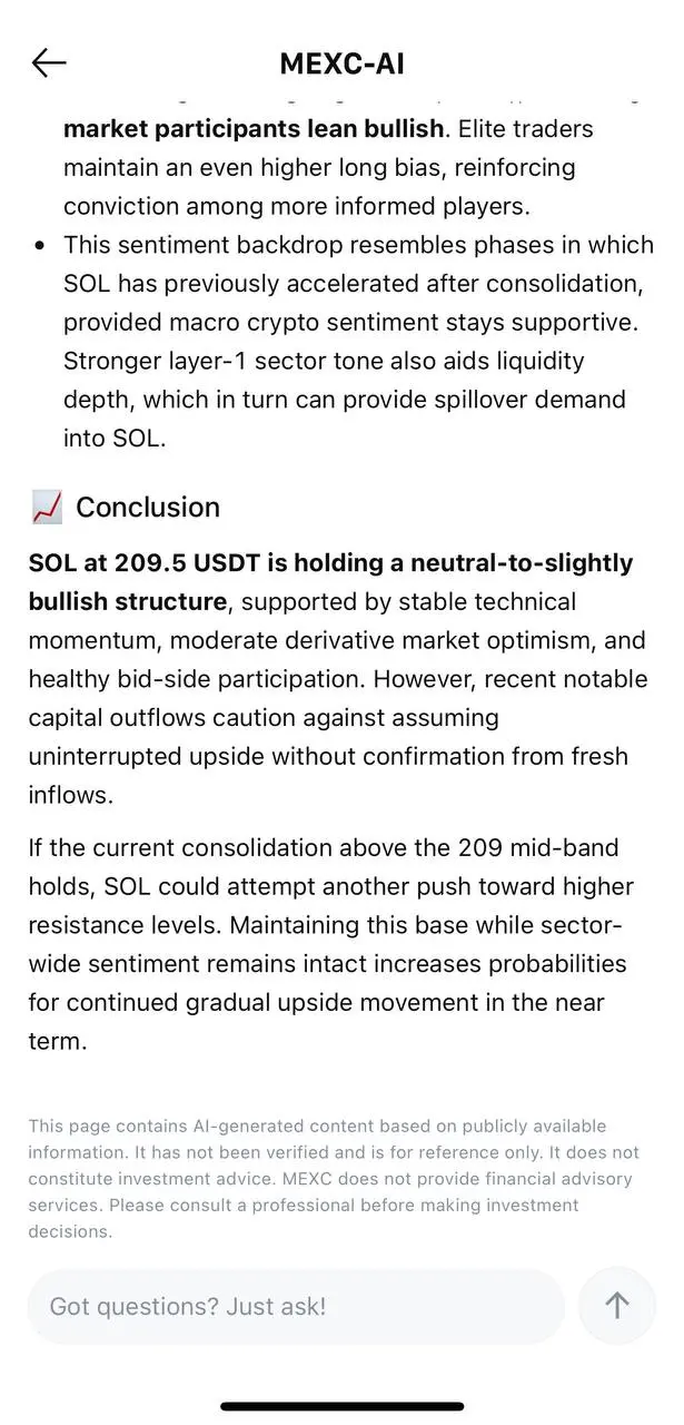 这些问题本质上围绕择时、趋势判断、机会识别及风险控制展开。 MEXC - AI 问答助手通过智能分析与个性化建议,提供全面解答,帮助用户省下了大量研究的时间。
